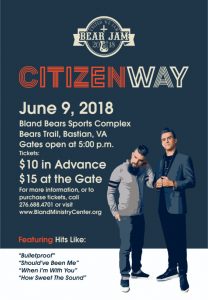 Bear Jam, Saturday, June 9. / Latest News / By Alan_W We’re going! Gates open at 5:00. First music at 6:00. CITIZEN WAY at 7:00. $15 at the gate.